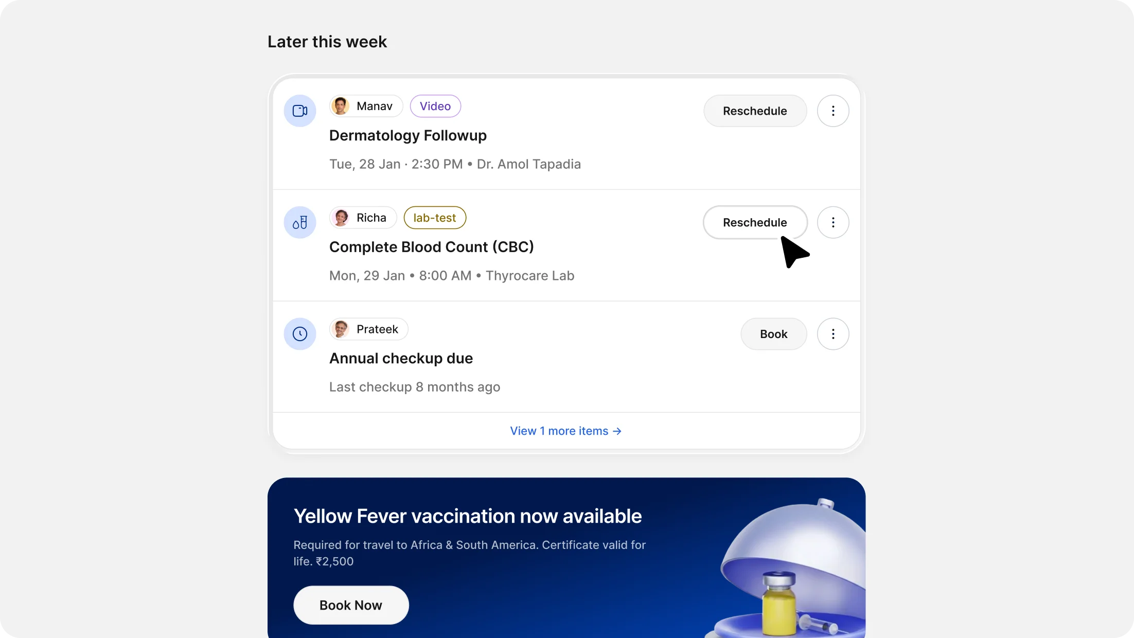 AI That Reads the Room. The AI knows your doctors, family, history. Open it and three suggestions wait, book a follow-up, schedule a home test, add an appointment for mom. Anticipation, not automation.
