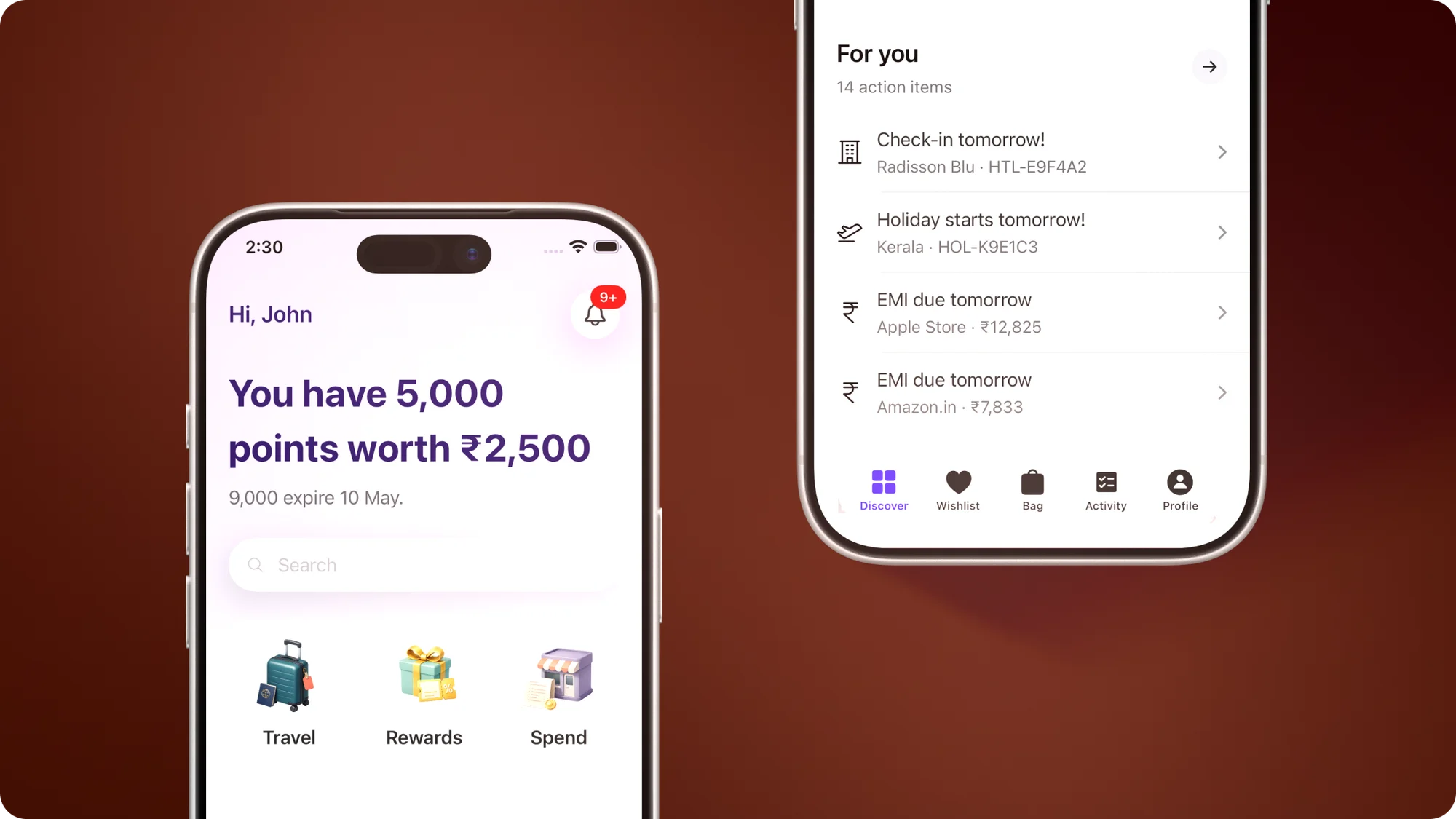 Action Over Browsing. Most rewards apps open to deals and promotions. This opens to what you're about to lose, points expiring Friday, fee waiver ₹8,000 away. Only what needs a decision right now.